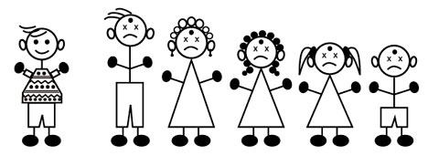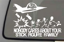 Our research shows that stick people families have become necessary because, apparently, it is absolutely vital that following traffic know exactly the demographics of the vehicle in front. Right down to the individual leisure pursuits of said family members, plus the cat and the odd horse.