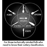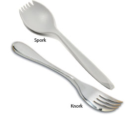 And then there's a knork. Which Mr Wiki says is a hybrid form of cutlery which combines the cutting capability of a knife and the spearing capability of a fork into a