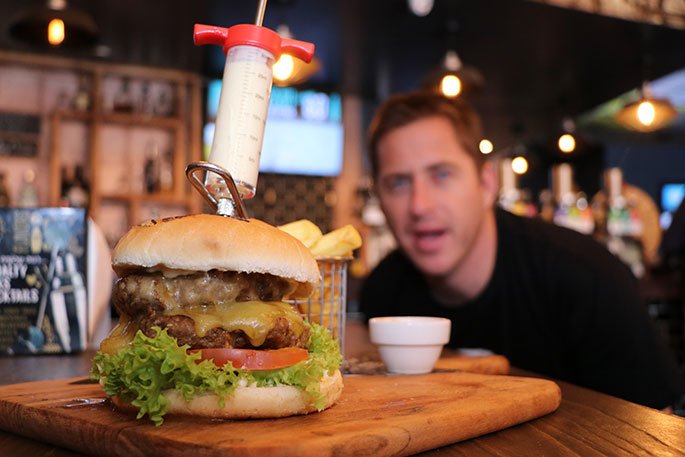 'Take for example, CBK Tauranga's Dr. Cheese Burger, which sees customers inject a syringe of gooey liquid cheese into the heart of their double beef patty burger.”