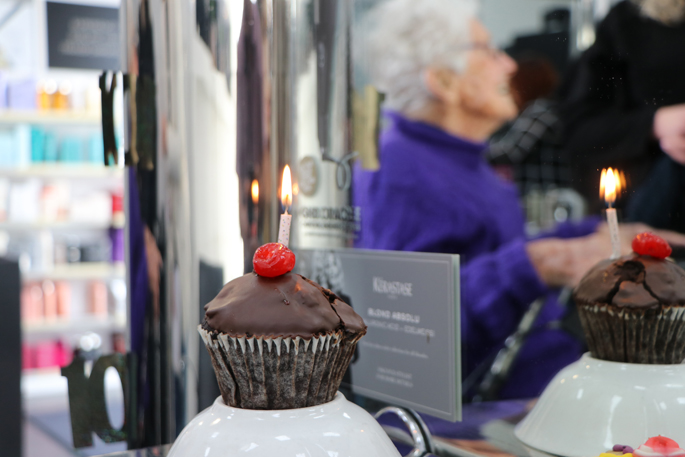 Upon Margaret's arrival, she is welcomed by her hairdresser of four years, Lesley Boylen, who has set up her chair with a giant confetti balloon, banners showing the number ‘100', and a precious birthday cupcake and cookie.