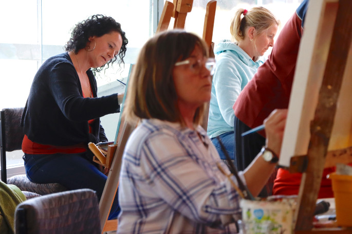 Emerging artist Vicki Fraser being guided by experienced artist Rob McGregor. Photo: Daniel Hines
