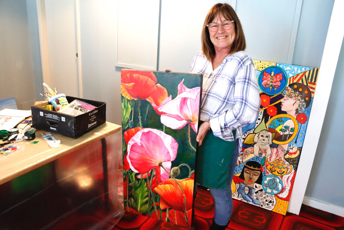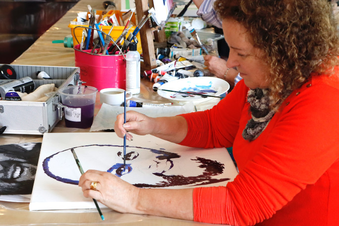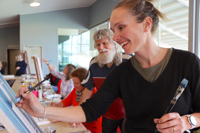 One of The Weekend Sun Emerging Artist Award finalists Marilyn Muirhead at one of the art workshops. Photo: Daniel Hines.