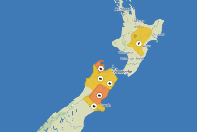 Mid-morning Monday, MetService lifted a series of orange and yellow heavy rain alerts that were issued for large parts of the South Island, but said heavy rain could still fall on Nelson, Marlborough, Canterbury north of the Rakaia River and in the Chatham Islands.