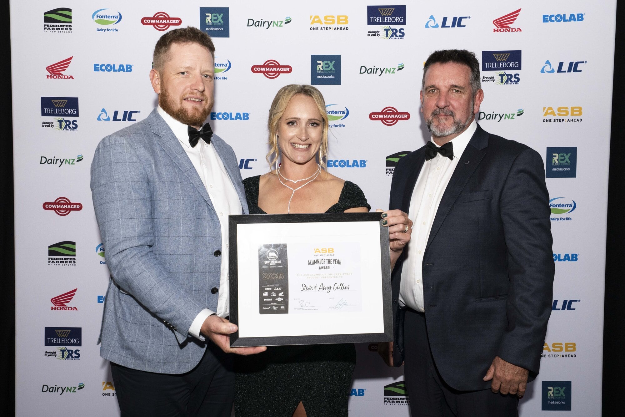 Winners of the 2025 ASB alumni of the year award Steve and Amy Gillies say access to 1% interest funding from ASB has launched their farming business leaps ahead.