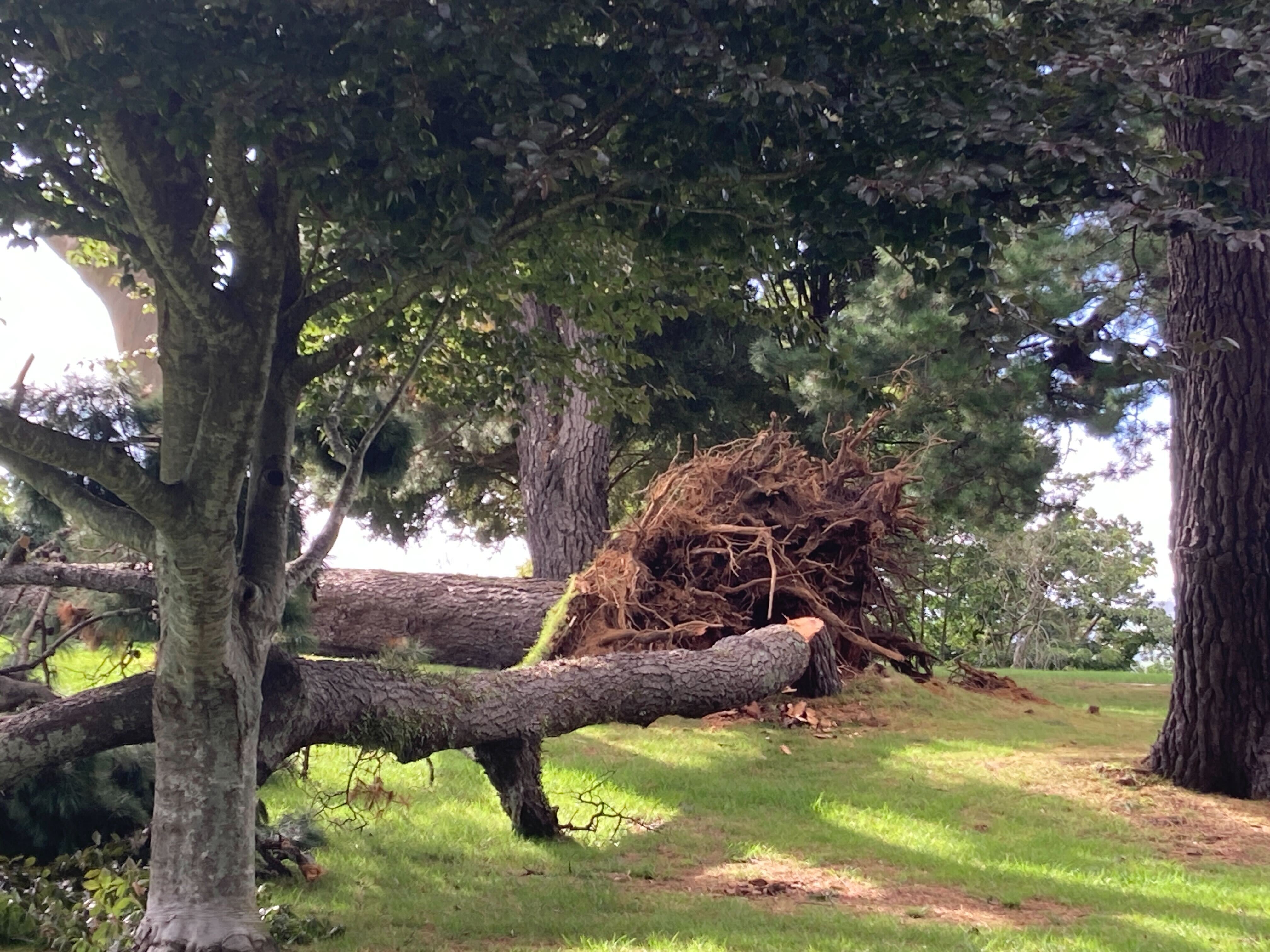 A 60m pine tree has been uprooted in Yatton Park, Tauranga. Photo / Samantha Motion