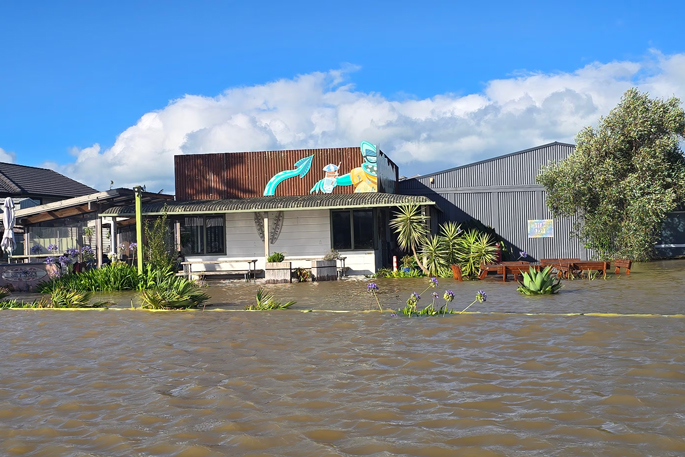 Surf Shack Eatery in Waihi Beach sustained major flood damage on January 22, 2026. Photo / Pip Coombes